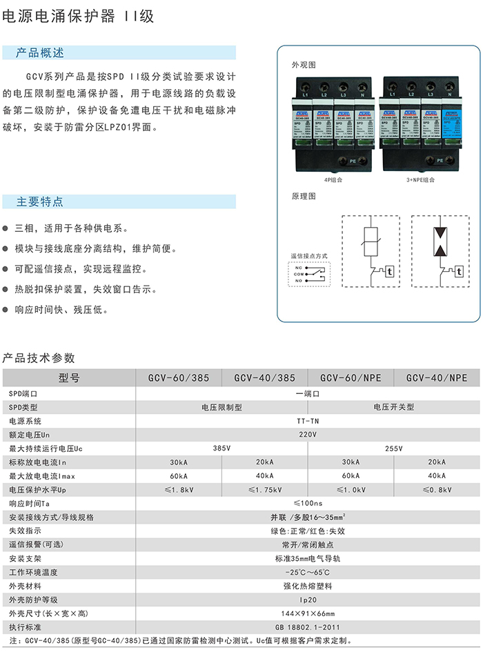 用于电源系统负载设备的第二级防护,保护设备免遭电压干扰和电磁脉冲破坏;单相或三相,适用于各种供电系统;模组分离式结构,运维简便;通流能力强、响应时间快、残压低;二级分类设计、限压型电涌保护器。